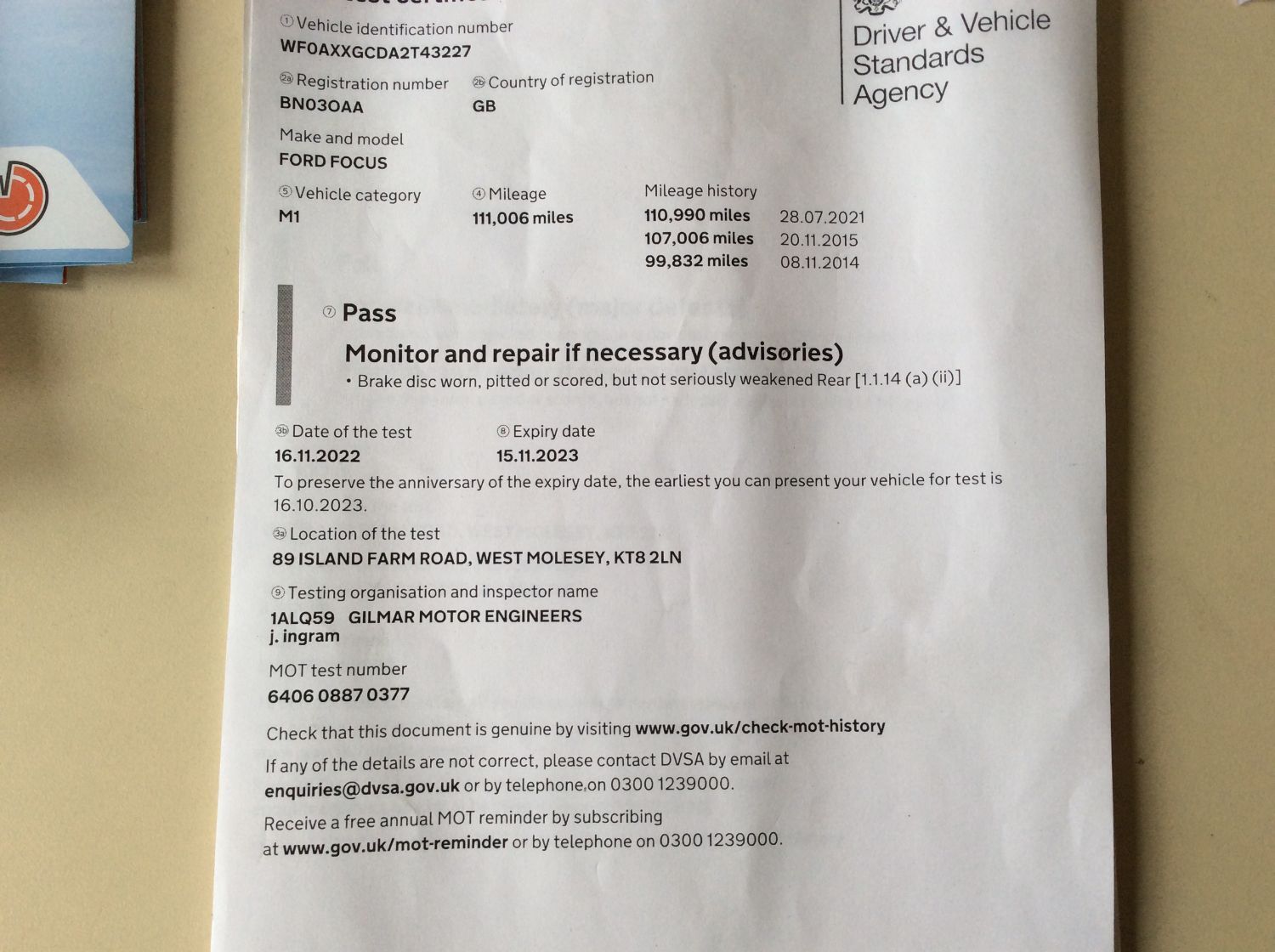 • MOT Expiry Date15-11-2024